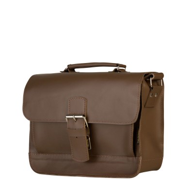 Skórzana torebka na ramię – Oly w kolorze ciemnego beżu. To średniej wielkości elegancka torebka wykonana w całości ze skóry naturalnej. Model ten może nosić zarówno kobieta, jak i mężczyzna – wszystko zależy od koloru. Posiada klapę zapinaną na zatrzask teczkowy, pod którą znajduje się kieszeń. W komorze głównej znajduje się: