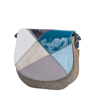 Skórzana torebka listonoszka z patchworkową klapą - Mała Zu