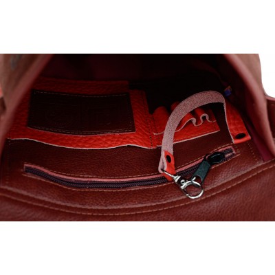 City Light - skórzana damska listonoszka, łącząca styl z funkcjonalnością, idealna dla kobiet ceniących elegancję i praktyczność. Wykonana z wysokiej jakości materiałów, ta torebka jest nie tylko wyjątkowo stylowa, ale również funkcjonalna. Bordowa podstawa listonoszki ze skóry naturalnej welurowej oraz czerwona klapa ze skóry licowej tworzą niepowtarzalne połączenie kolorów. Ozdobne zapięcie przewlekane przez klapę dodaje torebce charakteru, a naturalna skóra ozdobna z czerwonym motywem nadaje jej dodatkowej atrakcyjności.