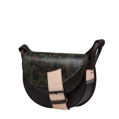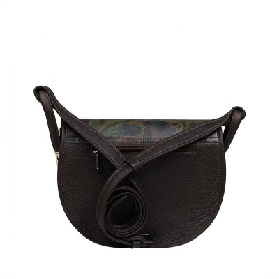 Elegancka listonoszka wykonana w całości ze skóry licowej – brązowa podstawa i boki, dekoracyjna klapa z charakterystycznym skórzanym językiem i dużą klamrą. Komora główna zamykana na zamek i magnes, z tyłu dodatkowa kieszonka na suwak. Regulowany pasek na ramię, elementy odblaskowe po bokach dla bezpieczeństwa po zmroku. Torebka mieści format A5 (30 × 24 × 8,5 cm) i posiada praktyczne wnętrze z kieszenią na zamek, smyczą na klucze, miejscem na długopisy oraz kieszonką wielkości karty. Idealna na co dzień – do pracy, na spacer czy zakupy.