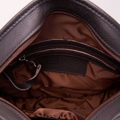 Podstawa torby wykonana jest ze skóry naturalnej w kolorze brązowym