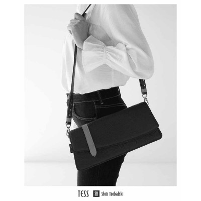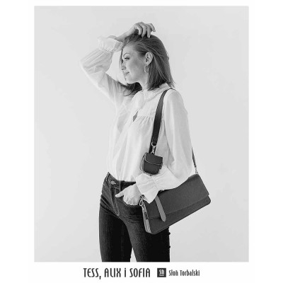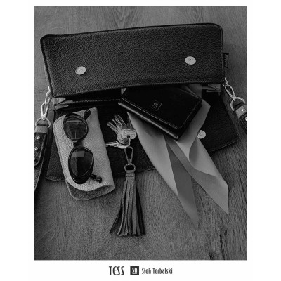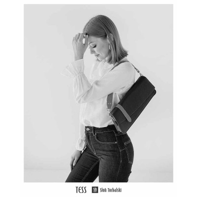 Do torebki damskiej Tess dołączone są 2 odpinane paski. Jeden z nich to krótka rączka do noszenia torebki w ręce; drugi pasek jest dłuższy do noszenia swobodnie na ramieniu.