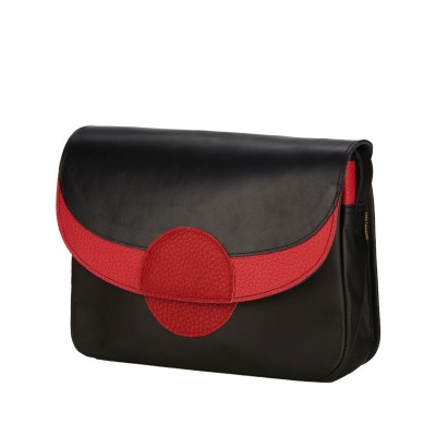 Torebka damska skórzana na ramię Rainbow to połączenie stylu i elegancji. Średniej wielkości, z ozdobnymi elementami na klapie, wykonana z wysokiej jakości czarnej skóry naturalnej. Komora główna skórzanej torebki mieści format A5, a geometryczne czerwone elementy dekoracyjne nadają torebce ciekawy design i unikatowe wykończenie. Torebka doskonale prezentuje się w codziennej stylizacji do pracy, na wyjścia ze znajomymi lub na miasto, zapewniając jednocześnie komfort noszenia.
