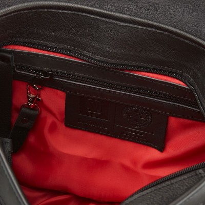 Podstawai klapa wykonana z wysokiej jakości skóry naturalnej w kolorze czarnym. Komora główna mieści format A5.