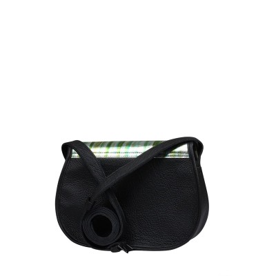 Listonoszka skórzana Mouse to średniej wielkości, ręcznie wykonana torebka z trwałej czarnej skóry licowej. Zamykana na suwak, z zieloną klapą i praktyczną kieszenią z przodu. Nietypowe zapięcie na bolczyk i kompaktowe wymiary są idealne do miejskich stylizacji.