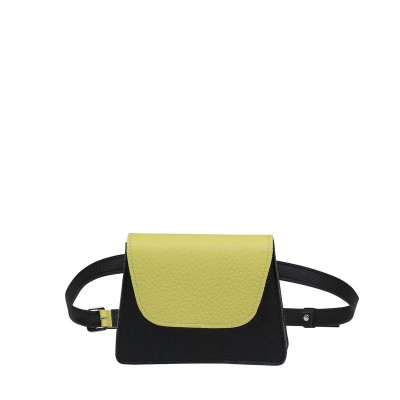 Mała torebka skórzana Ida z funkcją nerki. Posiada 2 wymienne paski: cieńszy klasyczny skórzany pasek na ramię oraz pasek skórzany do zapinania w pasie. Mała skórzana torebka w kolorze czarno-oliwkowo-kanarkowym to idealne dopełnienie każdej stylizacji. Zmieścisz w ntej mini torebce najpotrzebniejsze rzeczy, które dzięki mocnemu podwójnemu zapięciu na magnes będą bezpieczne w Twojej torebce.