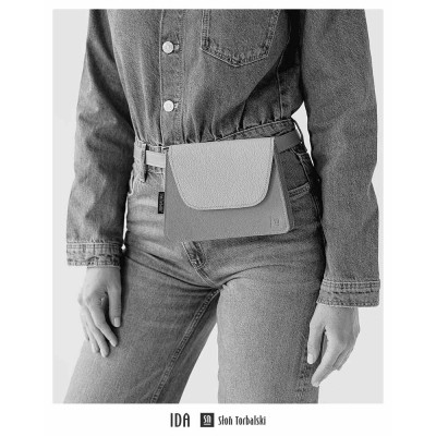 Torebka damska Ida posiada 2 wymienne paski. Jeden umożliwa noszenie torebki na ramieniu, drugi natomiast zapinany w pasie lub crossbody, nadaje jej funkcję nerki.