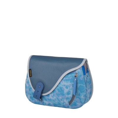 Elegancka listonoszka skórzana Mouse łączy skórę welurową w odcieniu niebieskim z gładką skórą licową. Klapa i język w kolorze niebieskim podkreślają jej styl. Torebka ma zamykaną na suwak komorę główną, kieszeń z przodu oraz praktyczne wnętrze z przegrodami i skórzaną smyczką na klucze.