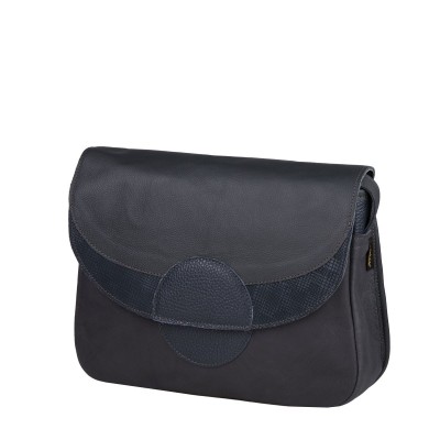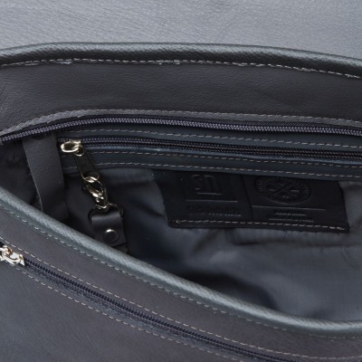 Średniej wielkości torebka z naturalnej skóry w stonowanej kolorystyce, idealna dla miłośników minimalistycznego designu. Mieści format A5, ma praktyczne kieszonki wewnątrz oraz dodatkową kieszeń pod klapą. Regulowany pasek do 150 cm i zapięcie na magnes zapewniają wygodę i funkcjonalność.