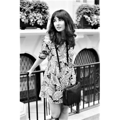 Wyjątkowa torebka skórzana z frędzlami ozdobnymi z motywem gazety. Torebkę wykonano z