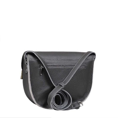 Sophie to mała szara skórzana torebka na ramię o półokrągłym kształcie, zamykana przekrętką. Z tyłu listonoszki znajduje się kieszeń na suwak, a wnętrze zawiera kieszeń na suwak, kieszonkę na kartę i smycz na klucze.