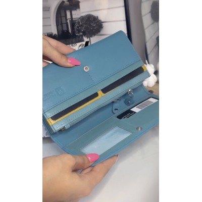Niebieski skórzany portfel z morskim wnętrzem i żółtym detalem. To nieco bardziej zwariowana wersja naszych klasycznych, skózanych portfeli. Daj się oczarować tym pięknym kolorom. Z takim akcesorium na pewno nie będziesz się nudzić!
