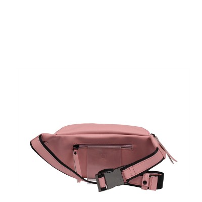 Torebka typu nerka wykonana ze skóry naturalnej licowej w kolorze różowym.