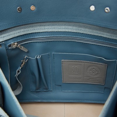 Skórzana listonoszka Oly – popielato-niebieska