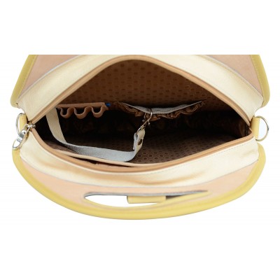 Ta skórzana torebka damska Poly to prawdziwy hit dla wszystkich kobiet poszukujących stylowego i funkcjonalnego rozwiązania. Wykonana z naturalnej skóry licowej o pastelowych odcieniach żółci, ta torebka emanuje elegancją i delikatnością.