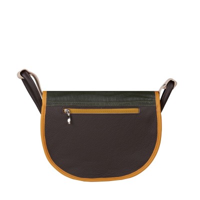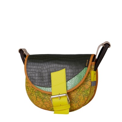 Ta skórzana, damska listonoszka Freshman Mini to eksplozja barw i przemieszanie stylów. Idealny wybór dla tych odważnych i lubiących wyróżniać się z tłumu. Wibrująca paleta barw na kolorowej, wzorzystej podstawie wykonanej z welurowej skóry doskonale współgra z klapą o głębokim, ciemnozielonym odcieniu, tworząc niezwykłe widowisko kontrastów i zgrania. Jednak to seledynowa wstawka, jak i wzbogacona o jasnożółte elementy zapięcia, staje się kwintesencją ekstrawagancji. To więcej niż zwykła torebka - to dzieło sztuki, które inspiruje do wyrażania siebie poprzez modę i kreatywność.