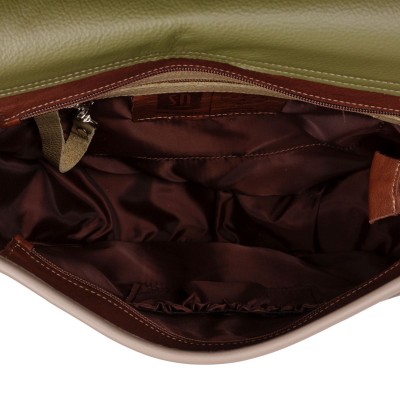 Listonoszka skórzana z patchworkową klapą – Zuza