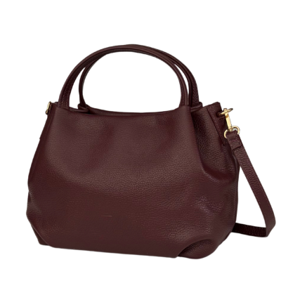 Stylowa i praktyczna torebka damska w formie kuferka wykonana z wysokiej jakości skóry naturalnej o fakturze groszkowej w eleganckim bordowym kolorze. To idealny wybór dla kobiet, które cenią elegancję, trwałość oraz wygodę użytkowania – zarówno na co dzień, jak i na specjalne okazje.