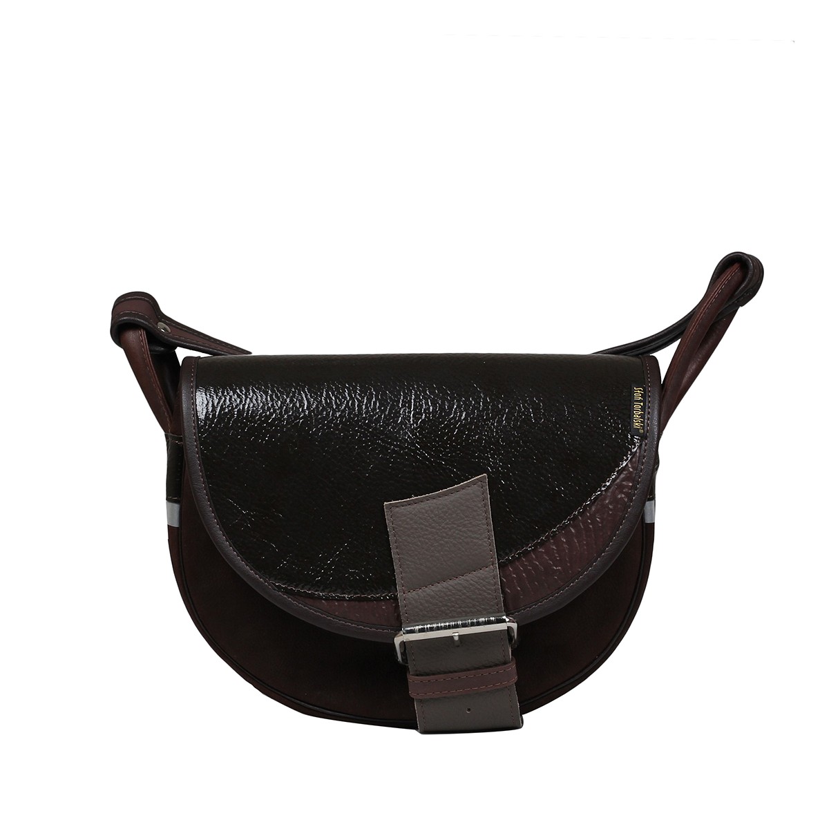 Przód i tył torebki jest w odcieniu ciemnego brązu, klapa wykonana jest w odcieniu beżowym, z dekoracyjną ozdobną wstawką. Słoń Torbalski postawił na bordowy pasek, który zwieńcza cały model.