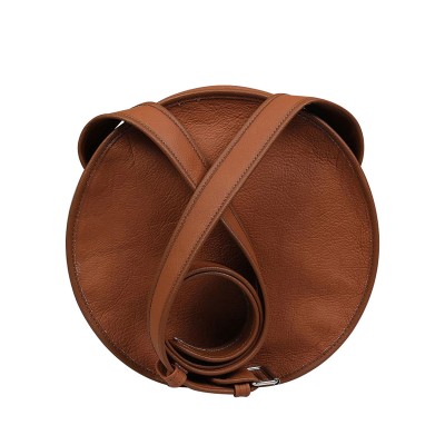 Okrągła skórzana torebka damska. Torebka Holy została uszyta ręcznie w Polsce z wysokogatunkowej skóry naturalnej.