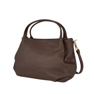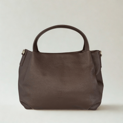 Stylowa i praktyczna torebka damska w formie kuferka wykonana z wysokiej jakości skóry o fakturze groszkowej w ponadczasowym odcieniu ciemnego brązu (gorzka czekolada). To idealny wybór dla kobiet, które cenią elegancję, trwałość oraz wygodę użytkowania – zarówno na co dzień, jak i na specjalne okazje.