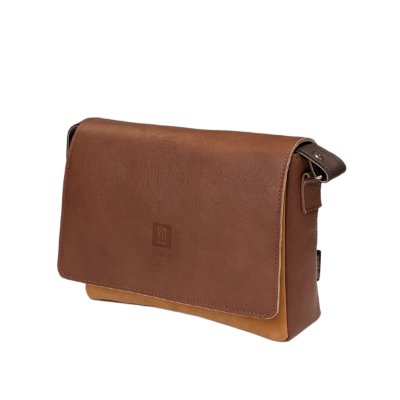 Front torebki uszyty jest z miękkiej skóry zamszowej w miodowym odcieniu, która nadaje całości subtelnej elegancji. Brązowa klapa oraz boki wykonane z gładkiej skóry licowej w kolorze camelowym podkreślają klasyczny i minimalistyczny charakter modelu. Klapa zapinana jest na dyskretne zapięcie magnetyczne, zapewniające wygodę użytkowania.