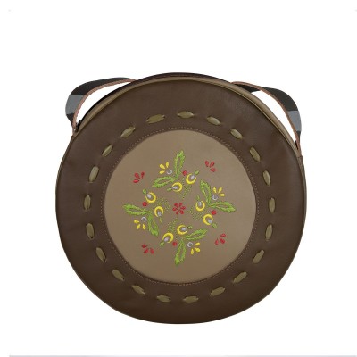 Okrągła skórzana torebka damska w stylu Folk z haftem.