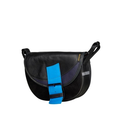 Skórzana listonoszka czarna z niebieskim akcentem — Freshman Mini