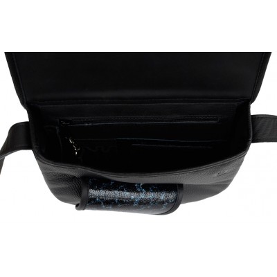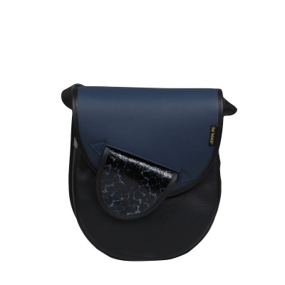 Czarno-granatowa torebka damska na ramię City Light to połączenie unikalnego designu i funkcjonalności. Listonoszka wykonana z czarnej skóry licowej, z granatową klapą, prezentuje elegancję i trwałość, podkreślając swój niezwykły charakter poprzez ozdobny język jako zapięcie.