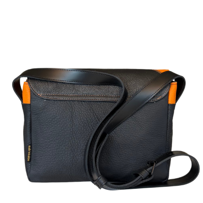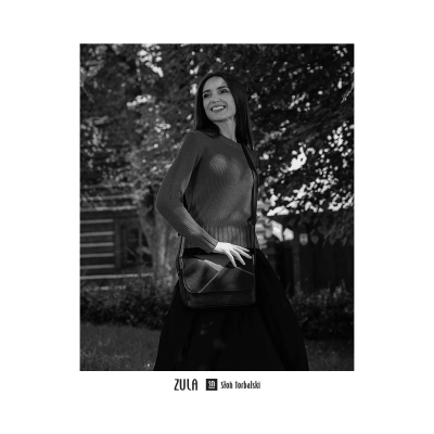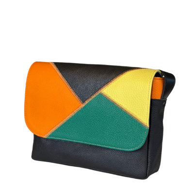 czarna torebka damska skórzana Zula na ramię, z kolorową patchworkową klapą