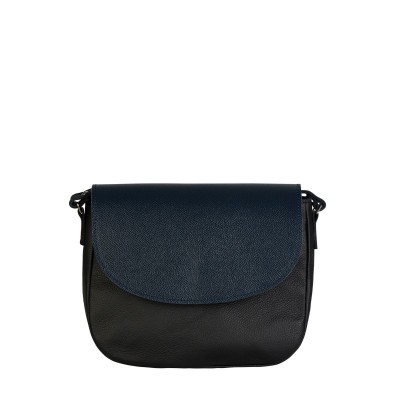 Mała, stylowa torebka Camila w kolorze czarno-niebieskim o wymiarach 18x20x6 cm. Posiada główną komorę zamykaną na zamek z miejscem na karty oraz tylną kieszeń na suwak na podręczne drobiazgi. Klapka w niebieskim kolorze zapinana na magnez. Długi, regulowany pasek (150 cm) pozwala idealnie dopasować torebkę do sylwetki. Doskonała na spotkania i codzienne wyjścia.