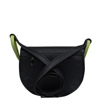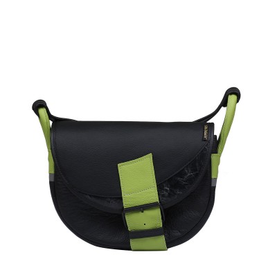 czarna z zielonymi dodoatkami damska torebka listonoszka skórzana na ramię Freshman Mini