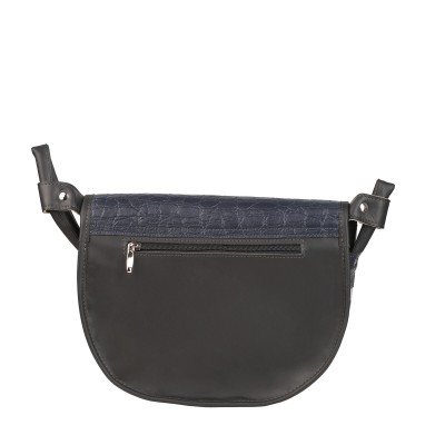 Elegancka torebka skórzana z czarnym przodem zamszowym i tyłem ze skóry licowej. Klapa z tłoczeniem i kolorowym akcentem nadaje unikalny wygląd, język w bordowym kolorze. Regulowany pasek, zamek i ozdobna klamra zapewniają wygodę i bezpieczeństwo. Z tyłu kieszonka na zamek. Wymiary: 30×24×8,5 cm. Idealna na codzień i do różnych stylizacji.