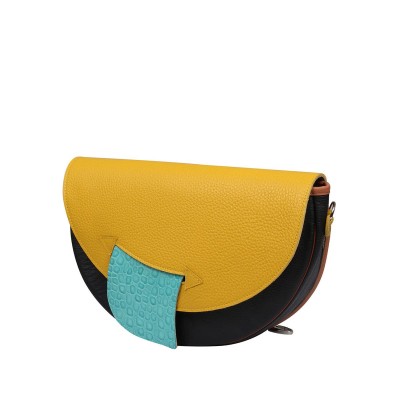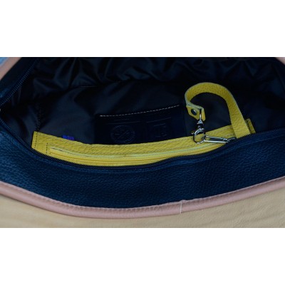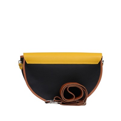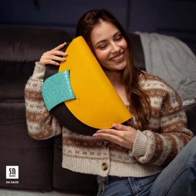 Moon – Półokrągła Damska Torebka Skórzana Stylowa i funkcjonalna torebka z kolekcji Cracow Bag, zaprojektowana z myślą o kobietach ceniących oryginalny design i wysoką jakość wykonania. Model Moon wyróżnia się półokrągłym kształtem oraz starannie dobraną kolorystyką. Podstawa torebki została uszyta z wysokogatunkowej skóry licowej w klasycznym czarnym kolorze. Klapę wykonano z naturalnej skóry licowej w energetycznym odcieniu żółci, a całość uzupełnia elegancka wstawka z ozdobnej skóry, dodająca torebce unikatowego charakteru. Główna komora zamykana jest na solidny zamek błyskawiczny, natomiast klapa zabezpieczona została ozdobnym językiem z magnetycznym zapięciem – połączenie estetyki z wygodą użytkowania. Wnętrze torebki: - zamykana na suwak kieszeń - otwarta kieszonka na telefon - dodatkowa kieszonka na kartę miejską lub drobiazgi - praktyczna smycz na klucze - elegancka podszewka podkreślająca jakość wykończenia