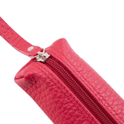 Piórnik skórzany w kolorze soczystej czerwieni wykonany jest z groszkowej skóry naturalnej. Elegancki piórnik jest estetycznie wykonany i bardzo wytrzymały. Zapinany na zamek w tym samym kolorze . Na środku jednego boku jest wytłoczone logo firmy Słoń Torbalski. Wnętrze jest surowe bez podszewki. Wymiary to około 20x2,5cm z łatwością pomieszczą kilka długopisów i inne akcesoria np. kredki do