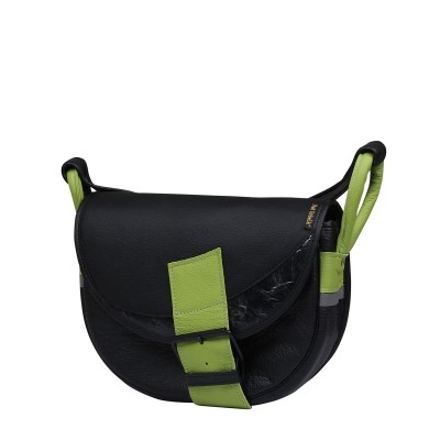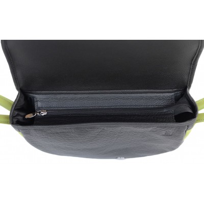 czarna z zielonymi dodoatkami damska torebka listonoszka skórzana na ramię Freshman Mini