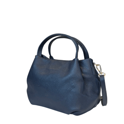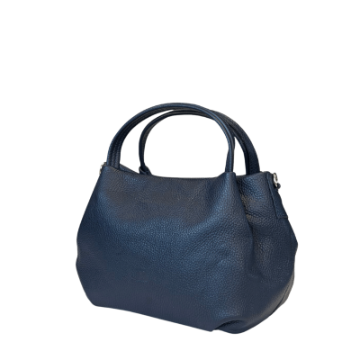 Elegancka torebka z wysokiej jakości naturalnej skóry w głębokim, granatowym odcieniu. Klasyczna, lekko zaokrąglona forma nadaje jej kobiecego charakteru i sprawia, że pasuje zarówno do codziennych, jak i eleganckich stylizacji.