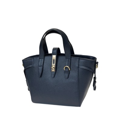Granatowa damska torebka skórzana z naturalnej skóry groszkowej – elegancka i pojemna skórzana torebka na ramię i do ręki. Trapezowy fason, złote okucia, zamek oraz zapięcie na przekrętkę.Model sezonowo dostępny, w wersji bez widocznego logo, co nadaje mu minimalistyczny i elegancki charakter.