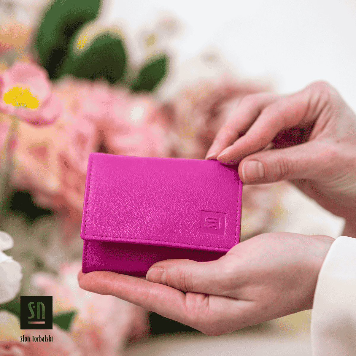 Różowy skórzany portfel damski Słoń Torbalski wykonany z wysokiej jakości skóry naturalnej, oferuje nowoczesną formę etui i kompaktowego portfela. Z funkcjonalnością w skórzanej zewnętrznej komorze na bilon oraz wymiennymi foliowymi kieszeniami wewnątrz, skórzany portfel zapewnia praktyczne i estetyczne rozwiązania. Zabezpieczenie RFID chroni prywatność, a wysoka jakość wykonania i dyskretnie wytłoczone logo dodają elegancji.