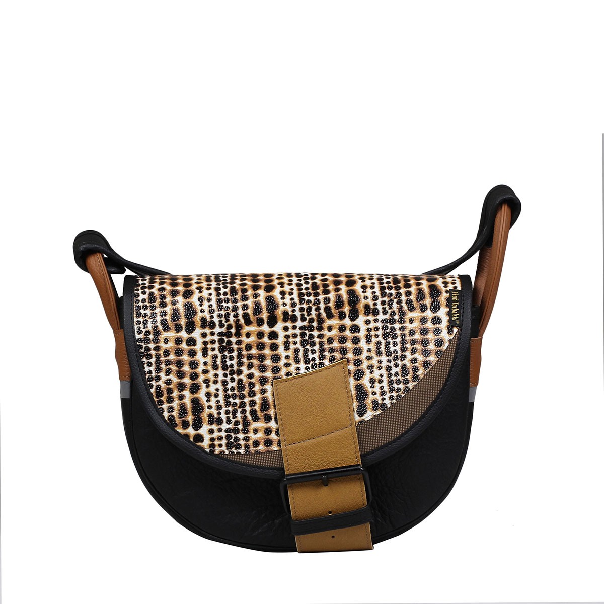 najwyższej jakości skóry naturalnej, ta mała saddle bag zachwyca nie tylko stylowym wyglądem, lecz także funkcjonalnością. Niepowtarzalna klapa w patchworkowym stylu nadaje listonoszce
