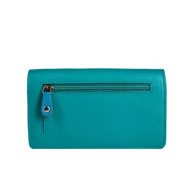 Damski portfel skórzany w niebieskim kolorze z żółtymi akcentami łączy elegancję z funkcjonalnością i trwałością skóry naturalnej. Ten portfel skórzany oferuje liczne przegródki na karty, banknoty i dokumenty, podwójną kieszeń na bilon oraz zewnętrzną kieszonkę na szybki dostęp do drobiazgów. Stylowy, kolorowy i praktyczny portfel skórzany to idealny wybór dla kobiet ceniących wygodę, porządek i modny, wyrazisty design.