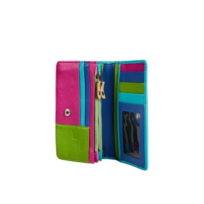 Wnętrze portfela to nowoczesna mieszanka kolorów – odcienie różu, zieleni i dwóch tonów niebieskiego nadają mu świeży, modny charakter.