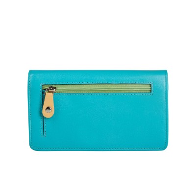 Damski portfel ze skóry – Słoń Torbalski (niebieski z kolorowymi akcentami)