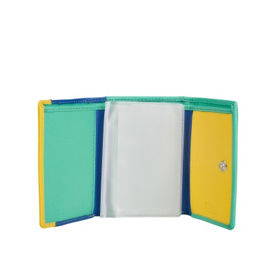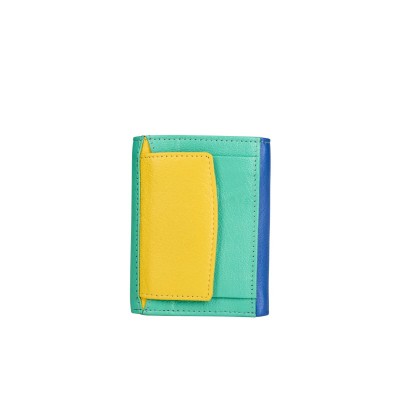 Elegancki mały portfel skórzany (zielono-niebiesko-żółty)