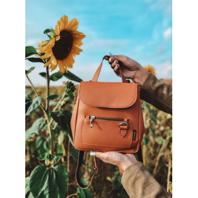 Kompaktowy plecak wykonany z naturalnej skóry licowej, idealny na co dzień i w podróży. Wyposażony w boczne napy umożliwiające regulację pojemności, zewnętrzną kieszonkę na suwak, półkółko na akcesoria oraz wewnętrzną kieszeń na zamek. Klapa zapinana na magnes, tłoczone logo Słoń Torbalski.