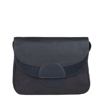 Średniej wielkości torebka z naturalnej skóry w stonowanej kolorystyce, idealna dla miłośników minimalistycznego designu. Mieści format A5, ma praktyczne kieszonki wewnątrz oraz dodatkową kieszeń pod klapą. Regulowany pasek do 150 cm i zapięcie na magnes zapewniają wygodę i funkcjonalność.