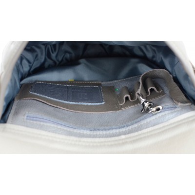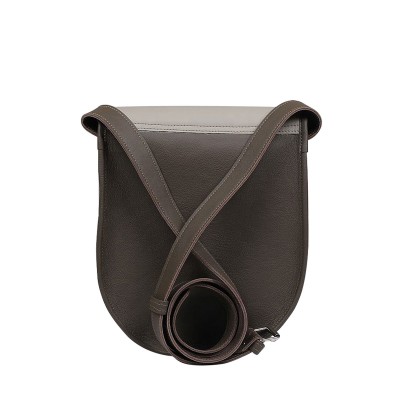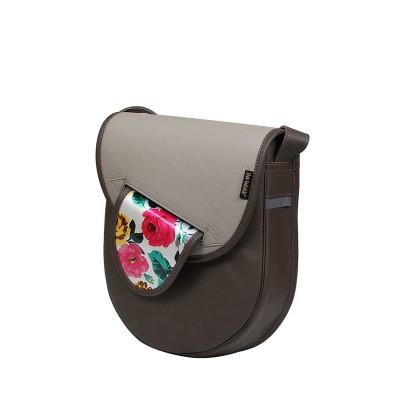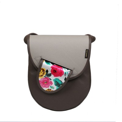 Półokrągła, ręcznie wykonana w Polsce torba ze skóry naturalnej w odcieniach popielato-różowym. Pojemna, mieszcząca format A5, z regulowanym paskiem, ukrytym magnesem pod klapą i odblaskowymi elementami po bokach. Wewnątrz: kieszeń na suwak, kieszonka na telefon i kartę oraz smycz na klucze. Stylowa i funkcjonalna propozycja na co dzień i do pracy.