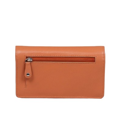 pomarańczowy portfel skórzany damski z kolorowym wnętrzem