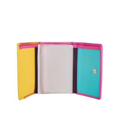 Wyjątkowy portfel dla kobiet, które cenią kolor, styl i funkcjonalność w jednym. Z przodu intensywny róż, z tyłu połączenie różu i niebieskiego, a grzbiet akcentuje energetyczny pomarańcz – razem tworzą niepowtarzalny, nowoczesny design. Wnętrze portfela łączy żółte, różowe i niebieskie tony, nadając całości lekkości i świeżości.
