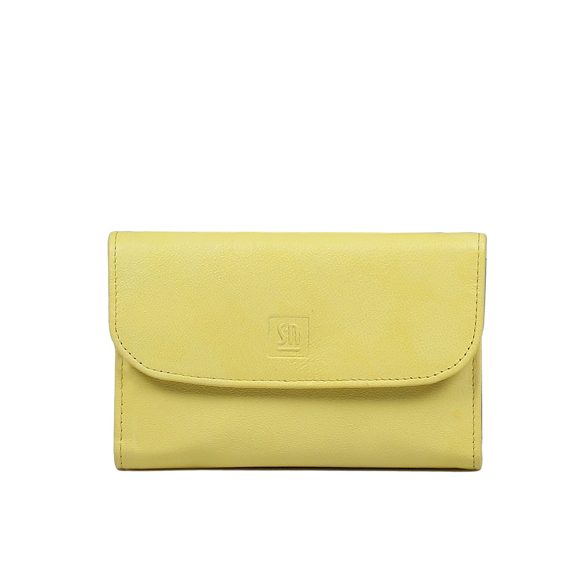 Żółty portfel skórzany z naturalnej skóry, łączący wyjątkowy design z funkcjonalnością. Posiada 10 miejsc na karty, 4 kieszonki, przegrodę na banknoty oraz zamykaną na zamek kieszonkę na bilon. Praktyczne, kolorowe wnętrze idealne na co dzień.